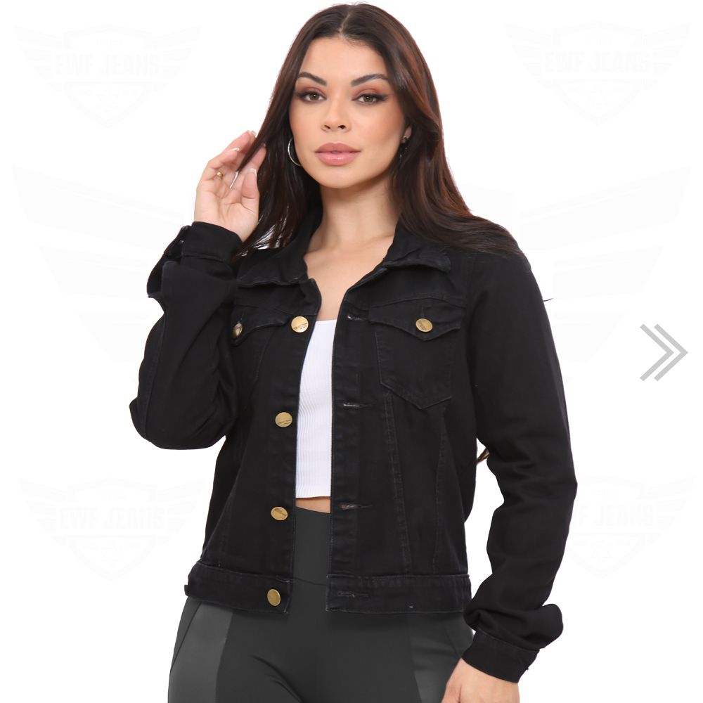 Jaqueta Feminina Jeans Sarja (casaco / Blusa) - EWF Jeans - Preto
