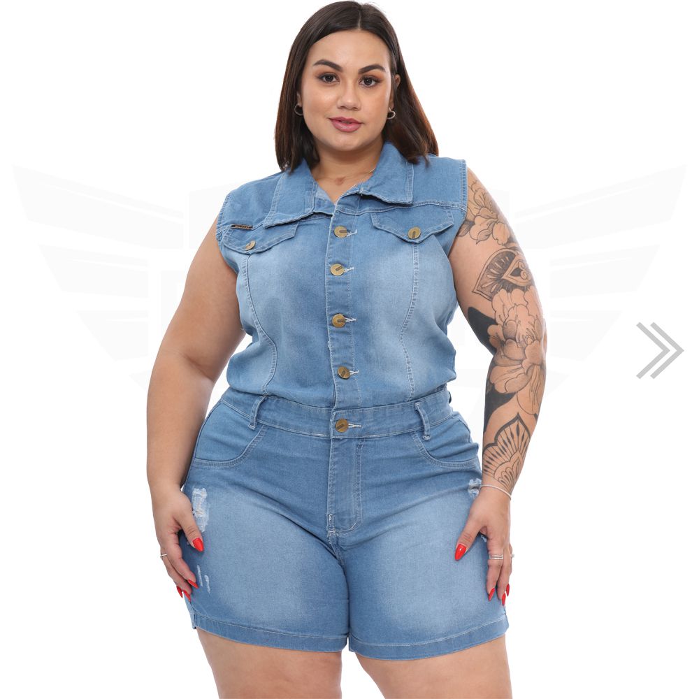 Macaquinho Jeans (Macacão Curto Jardineira Short) Regata - Azul Claro