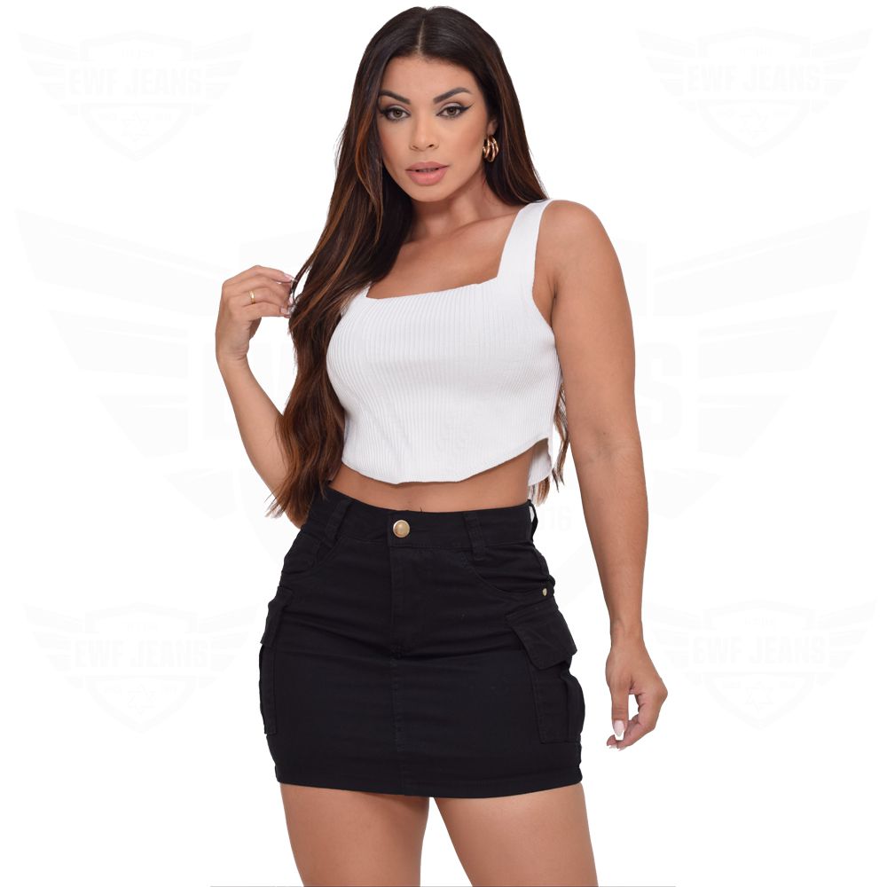 Mini Saia Jeans Bolso Cargo Lateral Cintura Alta - EWF Jeans - Preto