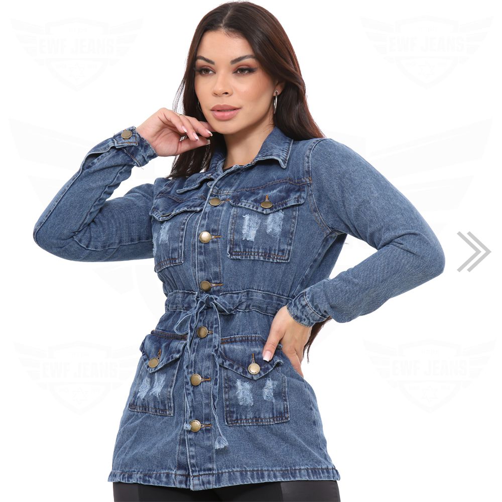 Parka Max Jaqueta Jeans Feminina 4 Bolsos - EWF Jeans - Marmorizado