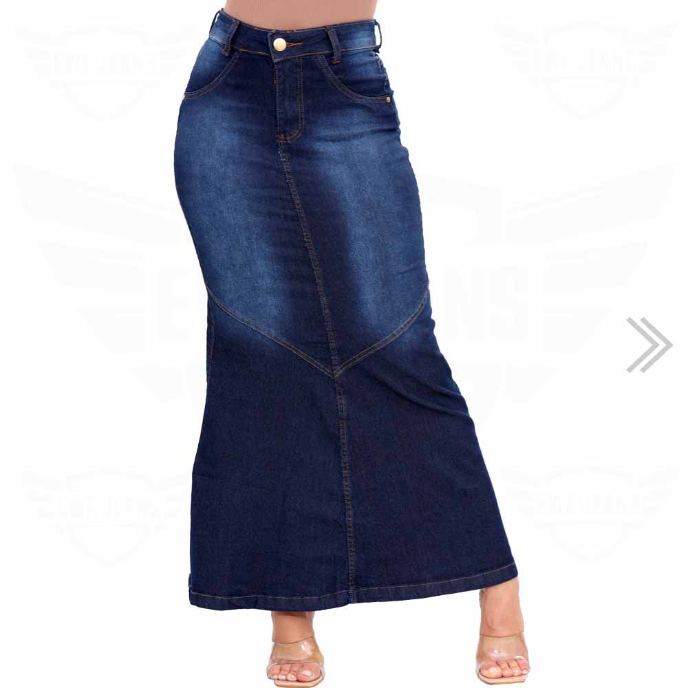Saia Longa Jeans Estilo Sereia - EWF Jeans - Azul Escuro